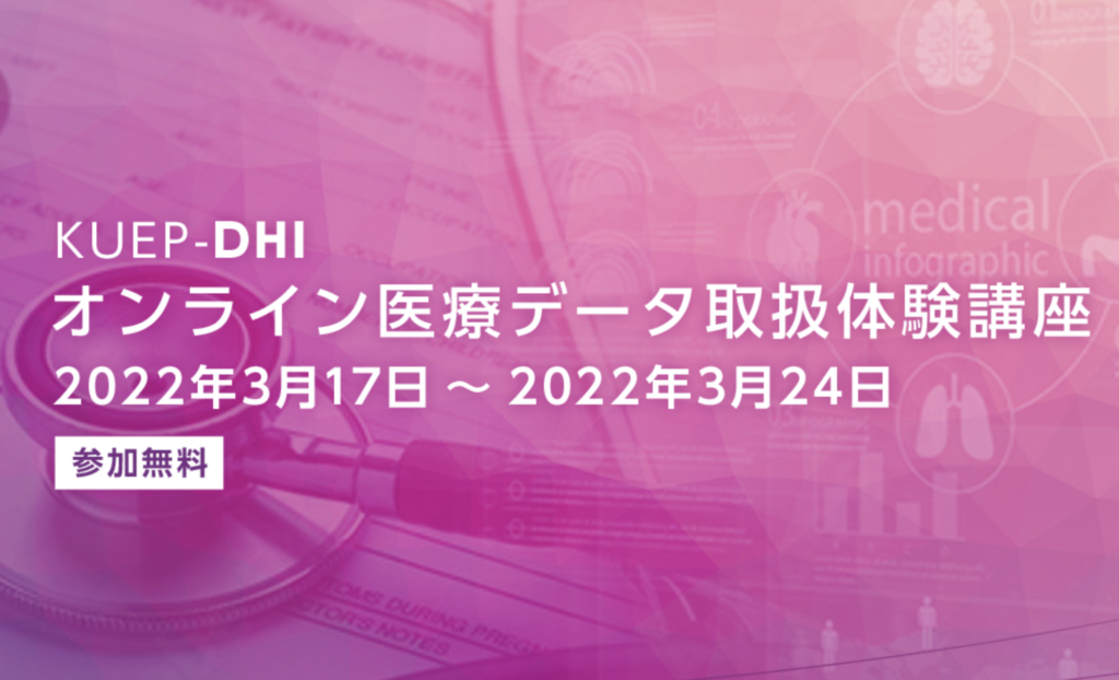 本事業(KUEP-DHI)では、 医療データ利活用基盤を構築・運営できる「基盤人材」、 医療データ活用の全体を律し、社会的コンセンサスの醸成する「統制人材」、 データを適切に利活用できる「活用人材」の育成を目的として教育コースを提供しています。 教育コースへの理解を深め、受講への興味を持っていただくため、 昨年、本コースで取り扱っている教材の一部を体験できるオンライン講座を開講いたしました。 具体的には医療データを取り扱うデータ処理について、 座学形式ではなく実習を主体とした教材を提供します。 幸いにも多くの参加者からご好評をいただいたことを踏まえ、 本年度も引き続き「医療データ […]